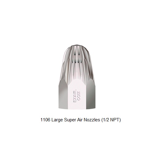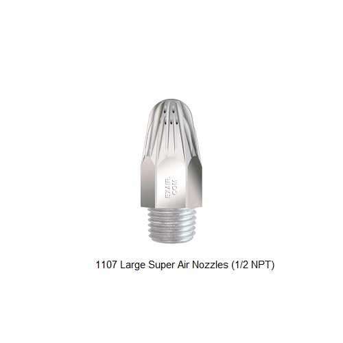 Model 1106, 1106SS, 1107 and 1107SS 1/2 NPT Super Air Nozzles EXAIR’s 1/2 NPT Super Air Nozzles produce 3.3 lbs (1.5 kg) of blowing force – 4 times that of ordinary nozzles. Air consumption and noise are extremely low compared to that of open pipe or copper tubes.