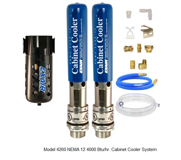 EXAIR's NEMA 12 (IP54) Cabinet Cooler® Systems are perfect for dust-tight, oil-tight enclosures in industrial settings where neither liquids nor corrosives are present. Unlike traditional, costly air conditioners that rely on freon, these systems use a vortex tube to create cold air from compressed air without any moving parts, ensuring minimal maintenance. The compact design allows for quick installation through standard electrical knockouts, preserving the NEMA rating of the enclosure. All models are UL Listed and CE Compliant, making them a cost-effective and reliable solution for cooling and purging electronic control panels.