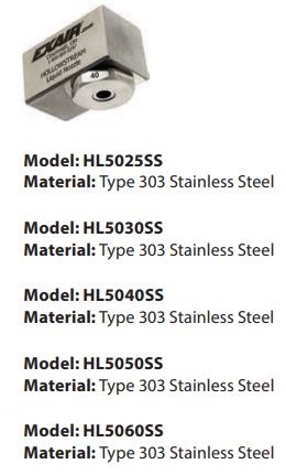 The right-angle design of the HollowStream™ Cone Nozzles is compact and can operate at liquid pressures of up to 250 PSI. These nozzles are commonly used with liquids such as water, rinse aids, and detergents, and they are also effective with chemicals, pesticides, and herbicides. The liquid flow rate can be adjusted by varying the liquid pressure.