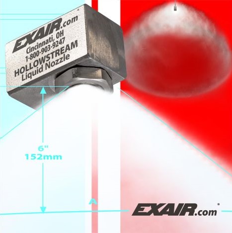 EXAIR’s 1/8 NPT HollowStream™ Cone Nozzles are designed with a circular ring spray pattern, making them one of the most widely used types of spray nozzles. Hollow cone spray nozzles are ideal for applications that require less liquid than their full cone counterparts, such as cooling, cleaning, washing, rinsing, and dust suppression. The vaneless design of these nozzles ensures wide open internal features that resist clogging, making them suitable for use with liquids containing particulates. They produce a uniform distribution in a hollow cone ring pattern.